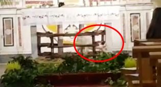 L’agnello bela dentro al recinto sull’altare di un monastero – Video