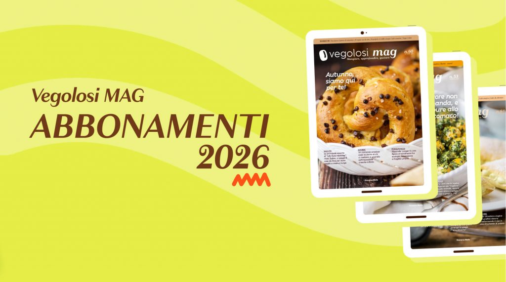 Un modo facile per cucinate vegan? Abbonarsi a Vegolosi MAG, la nostra rivista bimestrale digitale con contenuti inediti e più di 100 pagine di contenuti. Clicca sulla foto e scoprilo