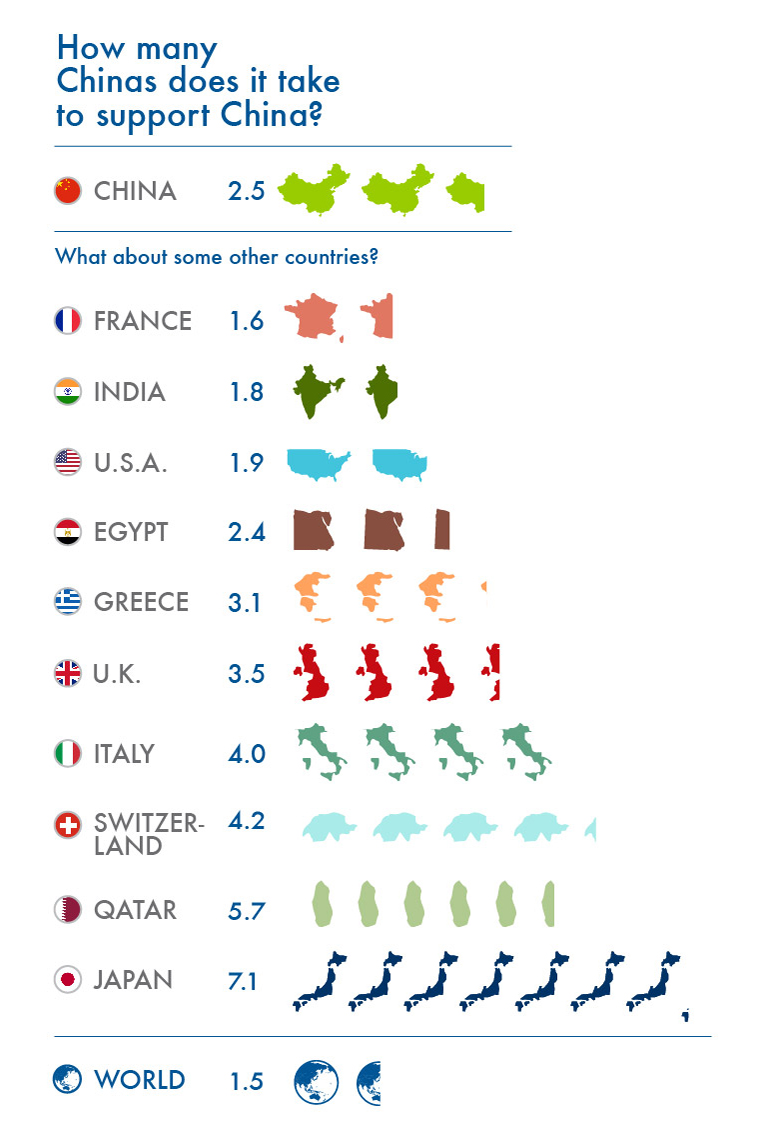 Secondo i dati raccolti dal Global Footprint Network, oggi consumiamo le risorse terrestri due mesi prima rispetto a 20 anni fa: nel 1993, infatti, l’Earth overshoot day cadeva il 21 ottobre. Nel grafico tratto dal sito, che vi riportiamo qui sotto, è facile constatare come addirittura alcuni Paesi (tra cui l’Italia) vivano ben oltre i propri limiti naturali, aggravando così anche l’impatto ambientale globale.