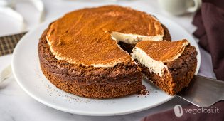 Una torta morbidissima grazie alla bagna al caffè che racchiude una crema soffice e golosa a base di formaggio spalmabile vegano: un vera delizia