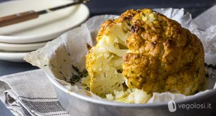 Un piatto per gli amanti dei sapori decisi: morbide cipolle passate al forno ripiene di una saporita crema di ceci ai capperi, il tutto completato da semi di zucca
