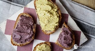 Questo patè di olive e okara è un antipasto tutto da spalmare su una fetta croccante di pane di segale, accompagnata da un’insalata mista
