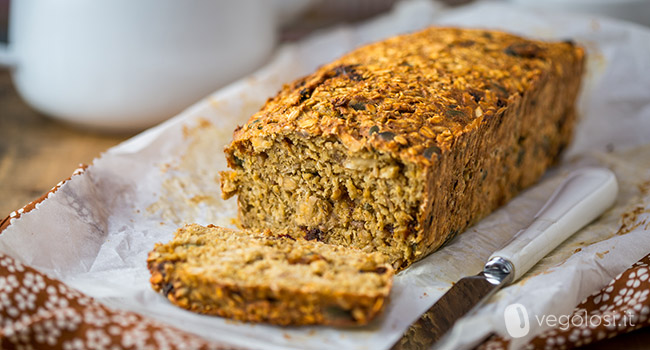 Questo dolce è una via di mezzo tra un plumcake e un porridge: ricco di fiocchi d’avena, di semi e di frutta essiccata, è l’ideale per iniziare la giornata con la giusta carica