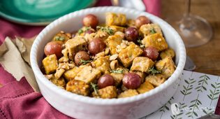 Un modo davvero intrigante di servire il tempeh, in cui il dolce dei fichi e la freschezza del basilico sono bilanciati da un condimento a base di aceto balsamico e salsa di soia