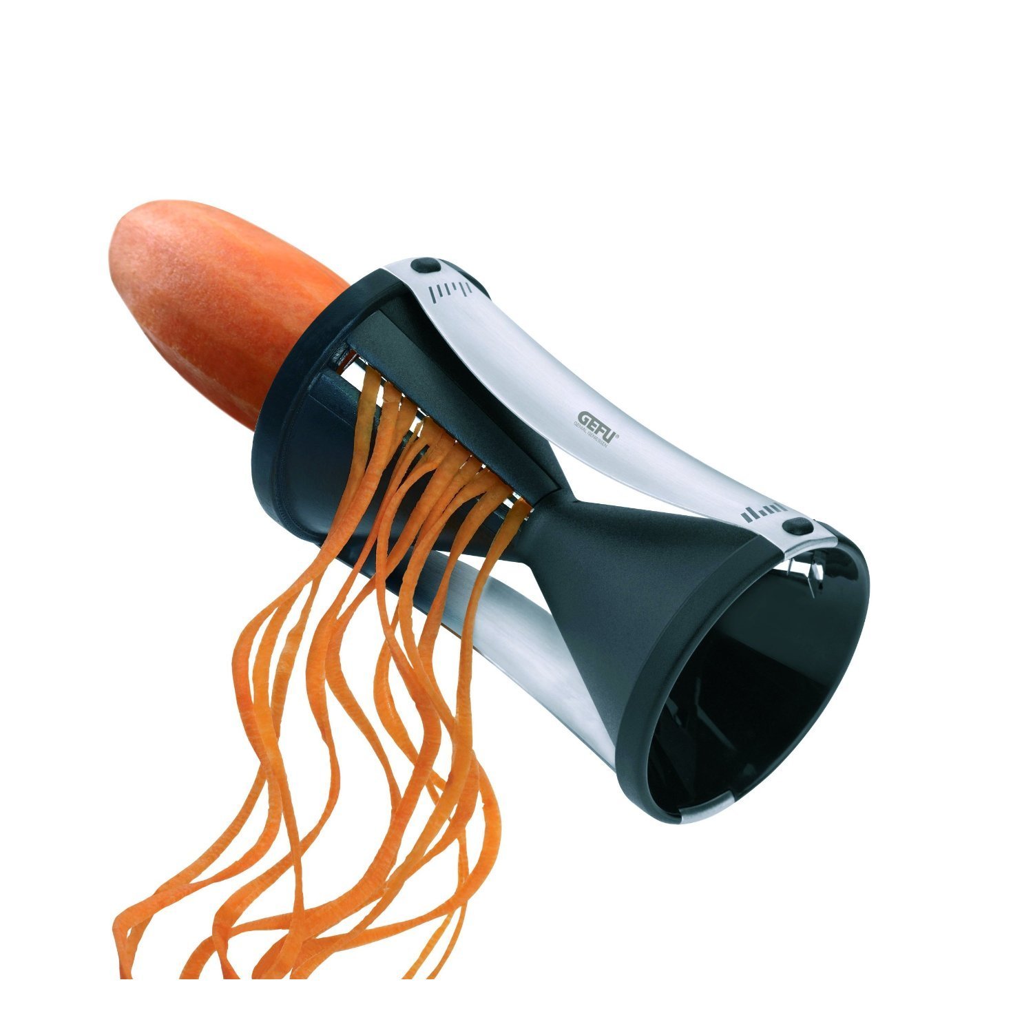 È certamente lo strumento più diffuso per ricreare “spaghetti di verdura” molto realistici. Il suo prezzo si aggira tra i 25 e i 40 euro ed è venduto solitamente con tre lame intercambiabili per ottenere spaghetti di spessore diverso. Disponibile online e nei negozi di alimentazione naturale.