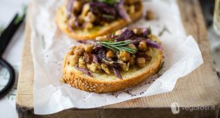 Le bruschette sono un grande classico tra gli antipasti, ma in questa versione abbiamo voluto renderle un po’ più interessanti arrostendo i ceci al forno insieme alle cipolle e completandole con fichi secchi e sommacco