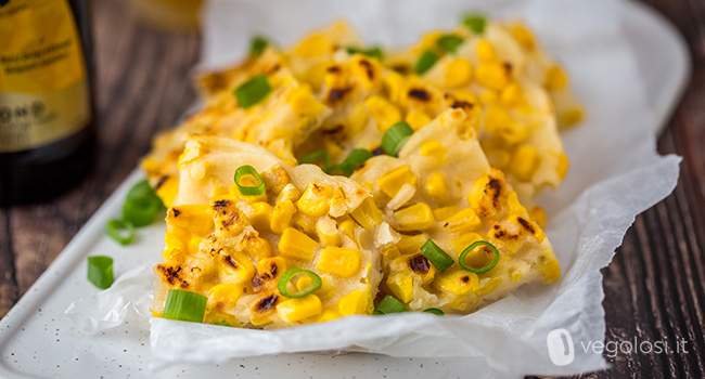 Un pancake davvero semplice nella realizzazione, dal sapore delicato e leggermente dolce grazie alla presenza del mais, perfetto per un aperitivo tra amici