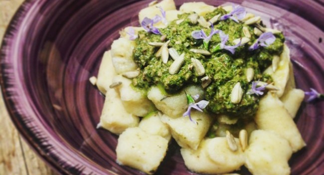 Gnocchi di patate e cannellini con pesto di foglie di barbabietola