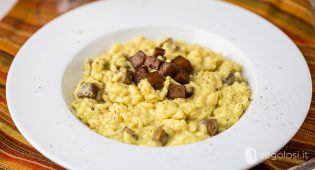 Un modo per gustare una bella carbonara vegana è trasformarla in un risotto, per un’apoteosi di gusto e cremosità senza precedenti