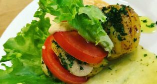 Patate a ventaglio al forno con pepe, curry e mozzarella vegan
