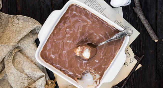 In una ciotolina mescolate la crema di sesamo tahin con il cacao amaro in polvere e l’acqua, quindi distribuite il composto sullo strato di yogurt. Riponete in frigo almeno 6 ore (o tutta la notte) prima di gustare.
