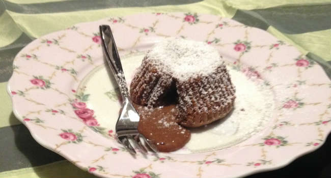 Riempite per più di metà i pirottini con l’impasto ben amalgamato e cuocete per 10/12 minuti in forno a 220 gradi (attenzione alla cottura, è la cosa più importnate per ottenere il “cuore caldo”!). Lasciate raffreddare per 2 minuti poi togliete dai pirottini, impiattate e spolverizzate con zucchero a velo.